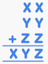 I spent that lunchtime in my classroom looking at the problem. I started by looking at the digits in the units column and noticed that since the value of the units in the answer must be z then x + y = multiple of 10. This gave me different possibilities to consider: