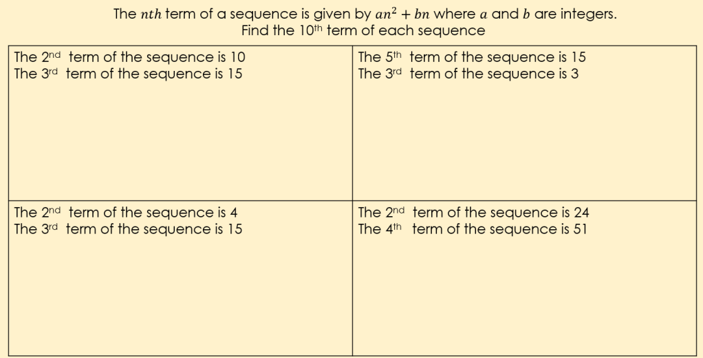 There a bunch of these questions in the PPT and then build up to some more tricky questions – but all nicely contained on a small grid which was nice
