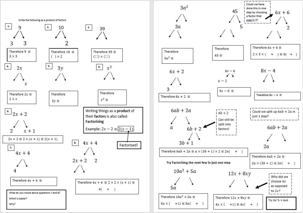Slow-build worksheets are built around giving students questions that start with some scaffolding that is slowly removed over the course of the exercise. The questions flow from one to the other so that the students can use pattern recognition and what they have been practising to answer the questions independently. Definitely influenced by the wonderful work of Craig Barton and many hours spent on variationtheory.com